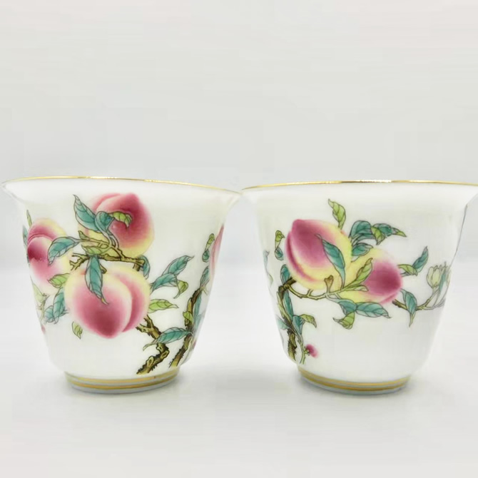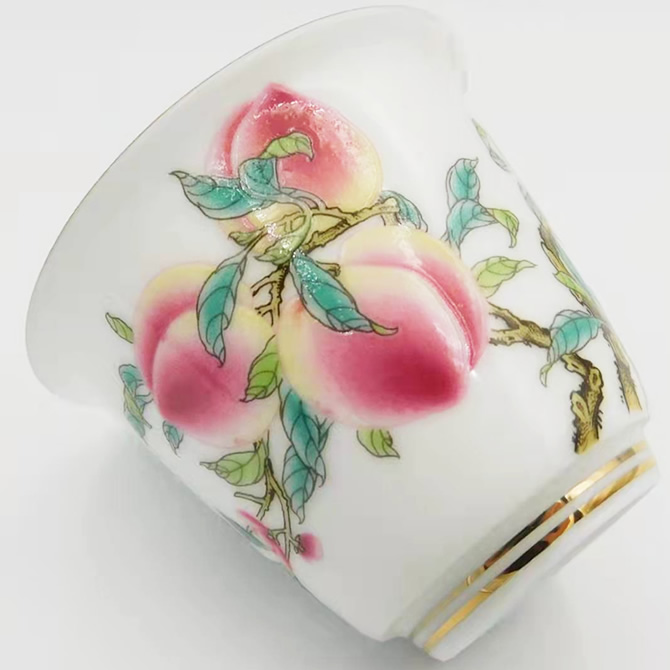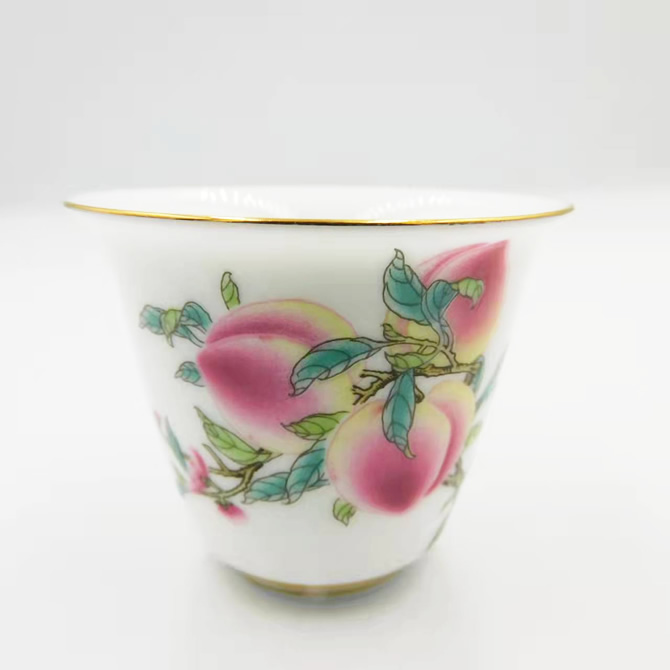 縁起の良い桃が描かれた茶杯で、幸運と健康を招き寄せてみませんか。