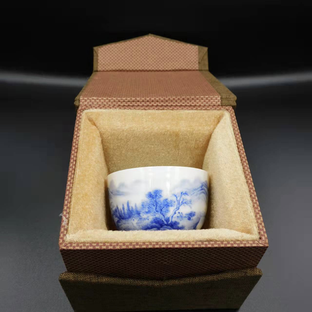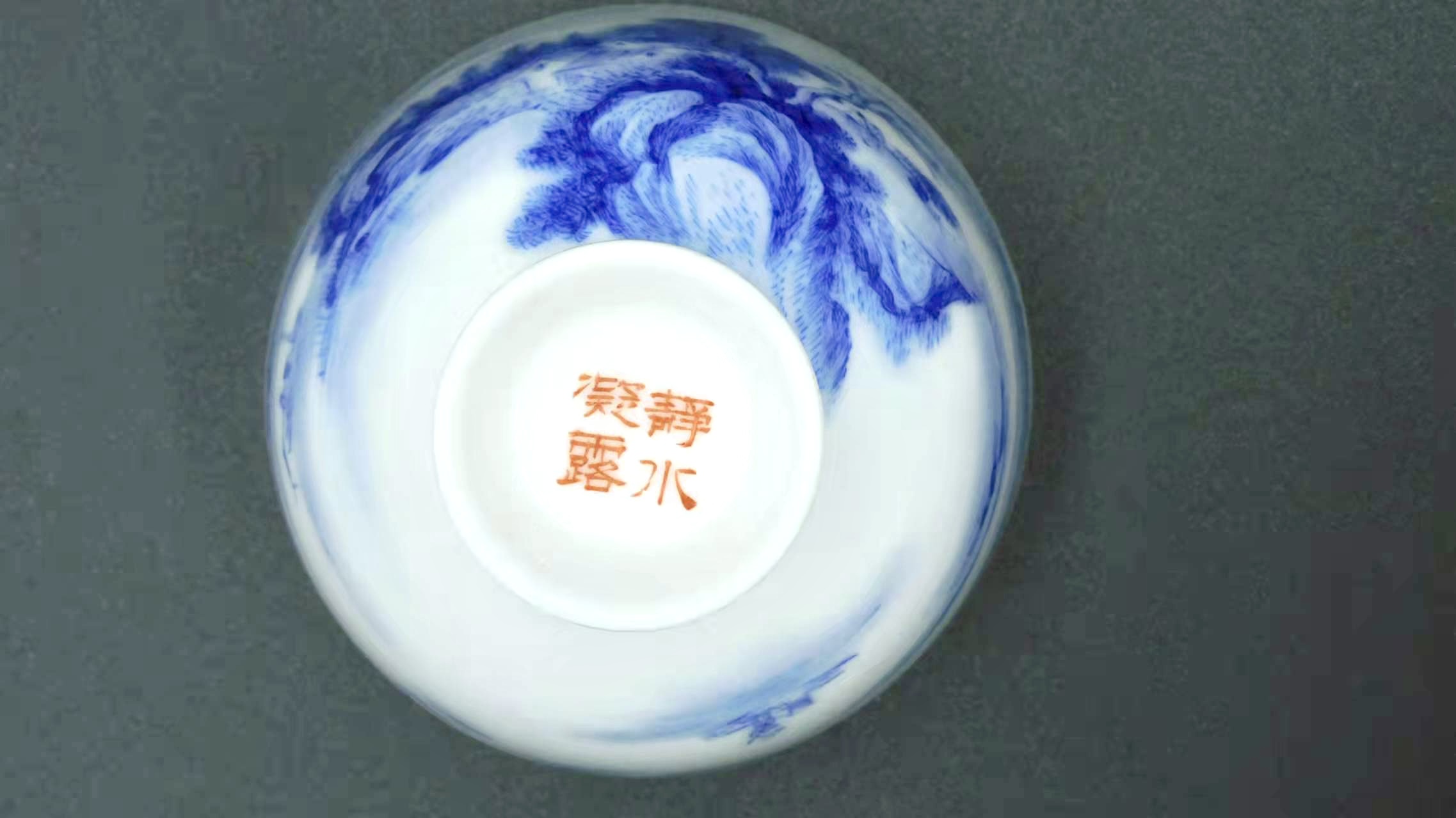 手書き景徳鎮茶杯「山川景色」