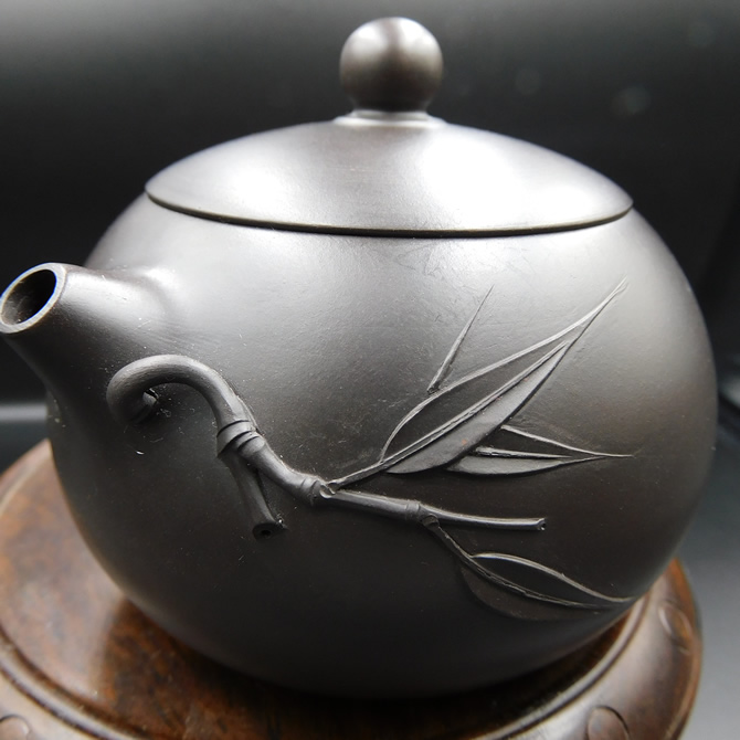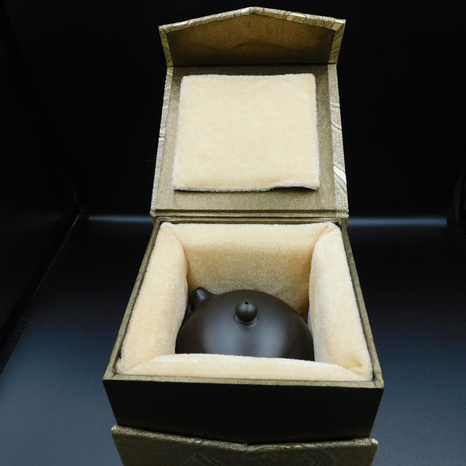 深みのある上品で落ち着いた色に、独特の艶感がある高級感あふれる茶壺です。
